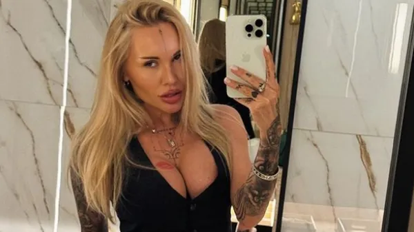 Ірина Морозюк провела фотосесію у басейні з надувним фламінго. Вона апетитно попозувала у крихітному купальнику, засвітивши татуювання та пишний розмір бюсту. Гарячі світлини опублікувала на своїй сторінці в Інстаграм.