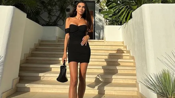 Цього разу партнерка колишнього футболіста вразила підписників свіжим фотосетом. Для свого образу брюнетка обрала елегантну та водночас відверту сукню без бюстгальтера, яка вдало засвітила достоїнства фігури, а саме пишний бюст, довгі ніжки та струнку форму тіла.
