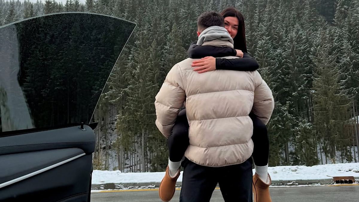 Вайбове фото Демченків: брюнетка довірливо застрибнула на руки в центрі Буковелю