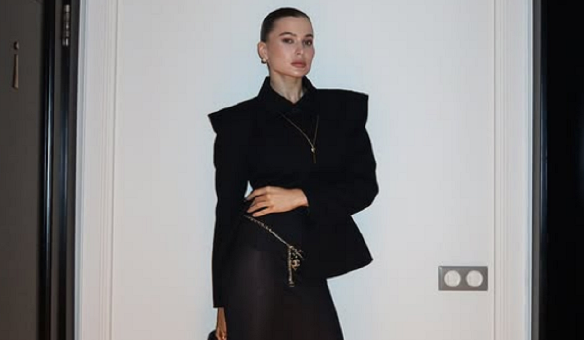Цього разу українська модель та журналістка перед прицілами камер попозувала у шикарній прозорій спідниці та чорному жакеті, демонструючи розкіш ідеального тіла. Її образ був підкреслений високими підборами, колготами та прикрасами, створивши шикарний та сміливий ансамбль.